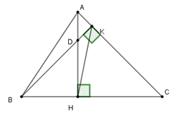 Gọi \(D\) là giao của \(AH\) và \(BC\) nên \(AD\, \bot BC.\)