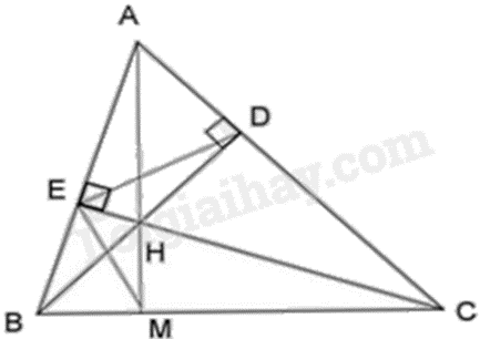 Mà đường cao \({\rm{BD}}\) và \({\rm{CE}}\) cắt nhau tại \({\rm{H}}\) (theo giả thiết)
