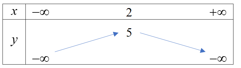 Parabol (P) có \(a = – 1 < 0\) và đỉnh là \(I\left( {2;5} \right)\)
