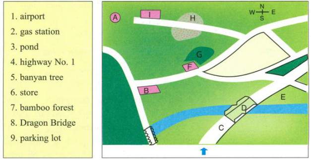 Look at the map. Then listen to the trip to Ba’s village. Match the place on the bus route .With the letters on the map