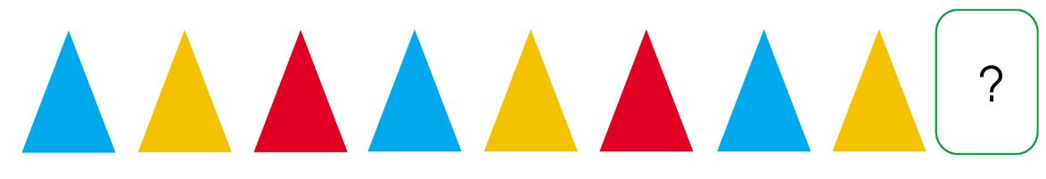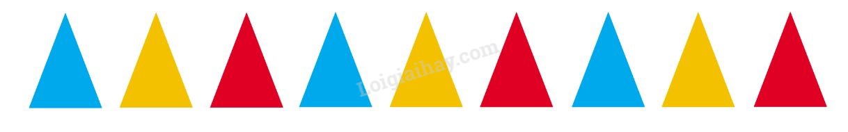 a) Các hình được sắp xếp theo thứ tự: hình tam giác xanh, hình tam giác vàng, hình tam giác đỏ rồi tiếp tục lặp lại như vậy.