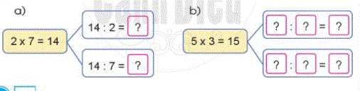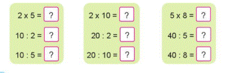 Cho phép nhân, nêu hai phép chia thích hợp: