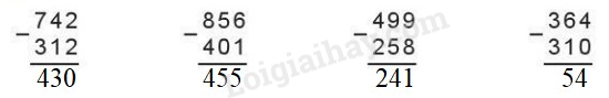 Trừ các chữ số thẳng cột theo theo thứ tự từ phải sang trái.