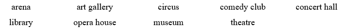 8 At the O2 __________ in London, up to twenty thousand people can watch some of the biggest acts in music.
