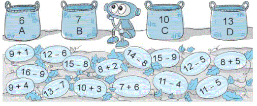7 + 6 = 13                   15 – 9 = 6                    11 – 4 = 7