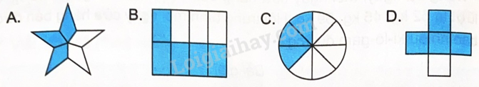 Ta thấy hình C có 8 phần bằng nhau, có 3 phần được tô màu.