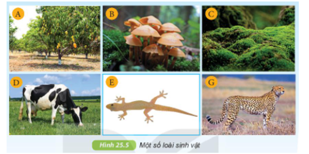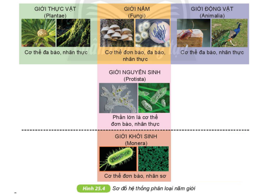 Quan sát Hình 25.4 SGK KHTN 6 để chỉ ra những giới sinh vật: