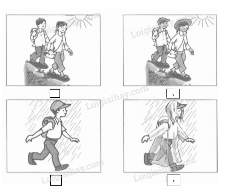 Đánh dấu x vào ô trống dưới hình vẽ thể hiện cách ăn mặc có lợi cho sức khỏe.