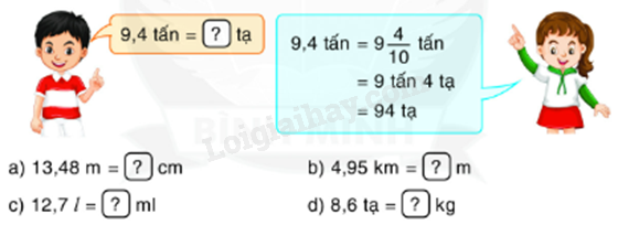 Dựa vào mối liên hệ giữa các đơn vị đo độ dài, khối lượng, dung tích để viết các số đo dưới dạng hỗn số thích hợp, sau đó viết dưới dạng số thập phân.
