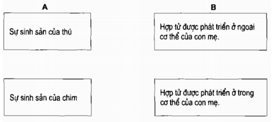 Nối khung chữ ở cột A với khung chữ ở cột B cho phù hợp.