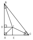 Cho \(\Delta ABC\) có \(\widehat A = {90^0}\), các tia phân giác của \(\widehat B\)và \(\widehat C\)cắt nhau tại I. Gọi $D,E$ là chân các đường vuông góc hạ từ $I$  đến các cạnh $AB$  và $AC.$  Khi đó ta có: