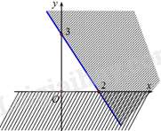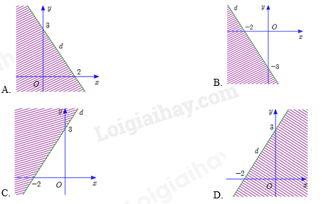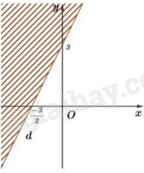 Ta thấy điểm O (0; 0) không thuộc đường thẳng d, \(2.0 – 3.0 \ge – 3\) và O thuộc miền nghiệm của bất phương trình nên bất phương trình cần tìm là \(2x – y \ge – 3\).
