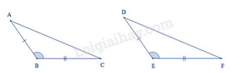 \(\begin{array}{l}AB = DE\\\widehat {ABC} = \widehat {DEF}\\BC = EF\end{array}\)