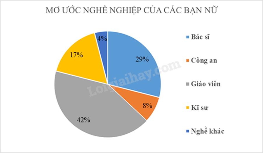 Một nhóm nghiên cứu khảo sát về mơ ước nghề nghiệp của các bạn học sinh nữ khối 7 của một trường THCS và thu được kết quả như biểu đồ sau: