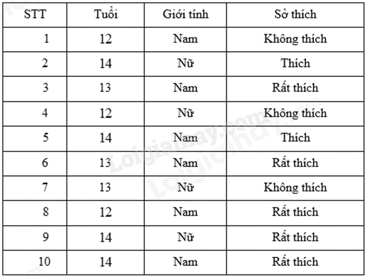 Kết quả tìm hiểu về sở thích đối với môn bóng đá của một một nhóm học sinh được cho trong bảng thống kê sau: