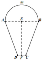 Khí cầu là một túi đựng không khí nóng hay các chất khí trong trường hợp dùng khí heli thì còn được gọi là khinh khí cầu, thường có khối lượng riêng nhỏ hơn không khí xung quanh và nhờ vào lực đẩy Ác-si-mét có thể bay lên cao trong khí quyển. Ngày nay khí cầu vẫn còn được sử dụng để chở khách du lịch hoặc vận chuyển hàng hóa vì chi phí rẻ. Giả sử mặt cắt theo chiều thẳng đứng của một khí cầu có dạng như hình bên phải. Biết cung AmB là nửa đường tròn đường kính 8 m và ABCD là hình thang cân có chiều cao 8m và \(CD = 2m\) Gọi \(V\) là thể tích khí của khối kinh khí cầu đó. Chọn khẳng định đúng trong các khẳng định sau.