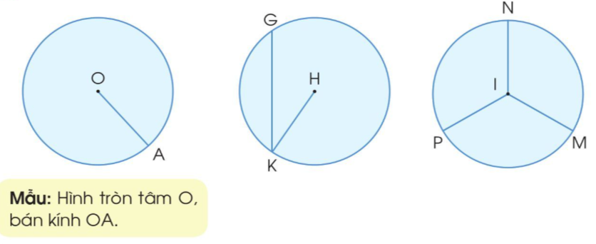 a) Gọi tên hình tròn và các bán kính của mỗi hình sau (theo mẫu):