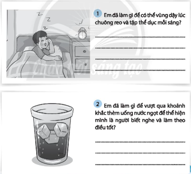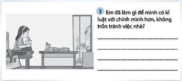 – Tình huống 3: Em có thể đặt chuông nhắc thời gian biểu và ghi lại những hậu quả nếu mình mải xem tivi mà không làm việc sẽ bị muộn mất. Em có thể động viên bản thân bằng cách tự thưởng sau khi đã thực hiện đúng thời gian biểu.