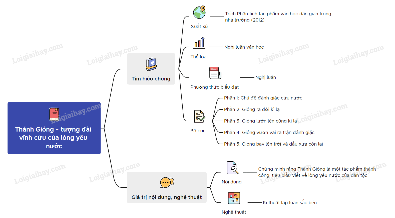 Sơ đồ tư duy về đoạn trích “Thánh Gióng – tượng đài vĩnh cửu của lòng yêu nước”: