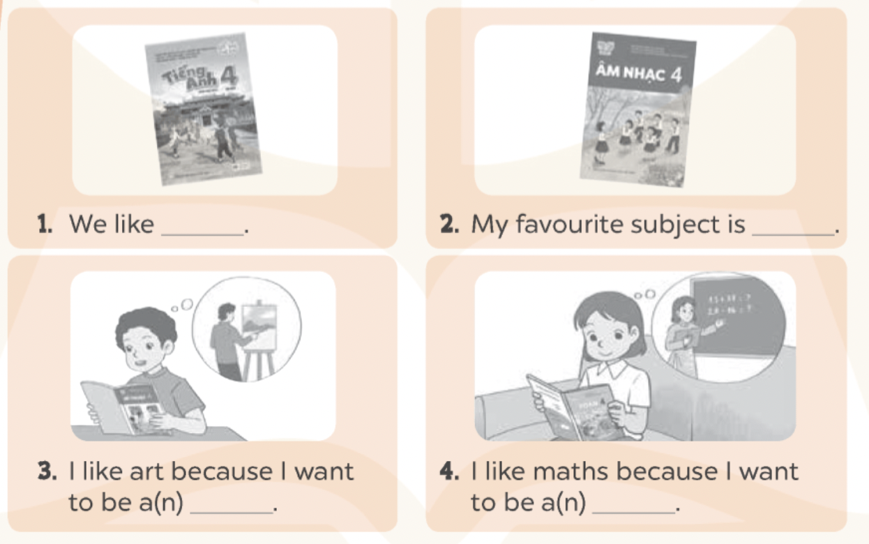 (Tôi thích môn mỹ thuật vì tôi muốn trở thành một hoạ sĩ.)
