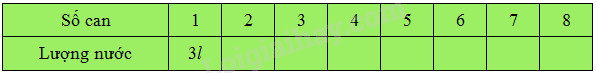 Lượng nước chứa trong mỗi can như nhau (đều là \(3l\)).