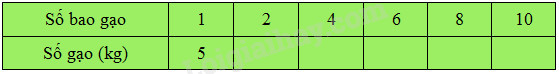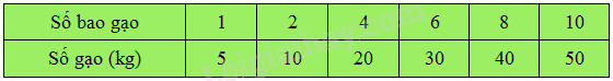 b) Quan hệ giữa số bao gạo và số ki-lô-gam gạo trong các bao :