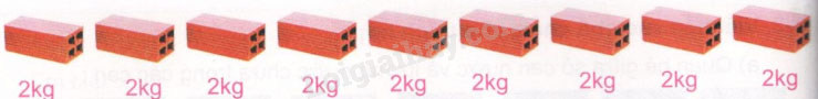 Khối lượng mỗi viên gạch là như nhau (2kg).