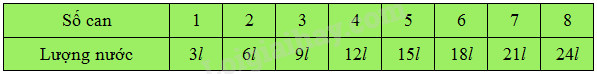 a) Quan hệ giữa số can nước và lượng nước chứa trong các can :