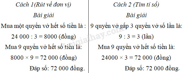 Bài toán : Bạn Hạnh mua 3 quyển vở cùng loại hết 24000 đồng. Hỏi nếu bạn Hạnh mua 9 quyển vở như thế thì hết bao nhiêu tiền ?