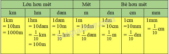 – Đơn vị lớn gấp 10 đơn vị bé hơn tiếp liền.