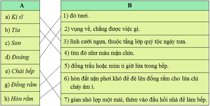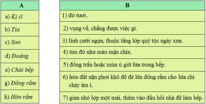 Chọn lời giải nghĩa ở cột B phù hợp với từ ngữ ở cột A.