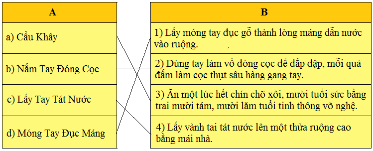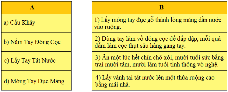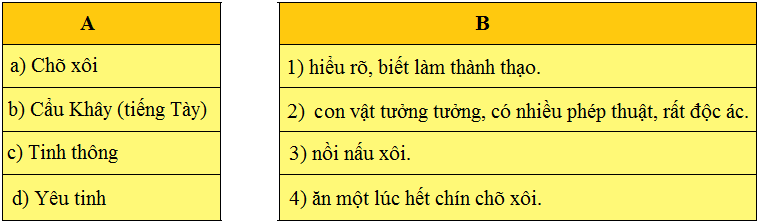3. Chọn lời giải nghĩa ở cột B phù hợp với từ ngữ ở cột A.