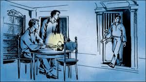 Bức tranh vẽ lại không gian một căn phòng đơn sơ nhưng ngăn nắp, có hai thanh niên (anh Thành và anh Lê) đang trao đổi bàn bạc điều gì đó dưới ngọn đèn dầu, người thanh niên đứng ở cửa (anh Mai) xuất hiện tới thông báo tin tức cho hai người trong phòng.
