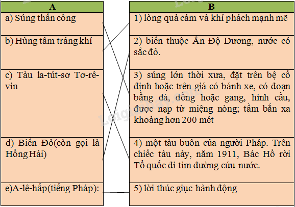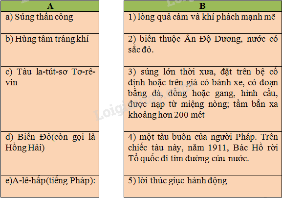 Chọn lời giải nghĩa ở cột B phù hợp với từ ngữ ở cột A