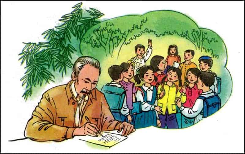 Ngày hôm nay là ngày khai trường đầu tiên ở nước Việt Nam dân chủ Cộng hòa. Tôi đã tưởng tượng thấy trước mắt cái cảnh nhộn nhịp tưng bừng của ngày tựu trường ở khắp các nơi. Các em hết thảy đều vui vẻ vì sau mấy tháng giời nghỉ học, sau bao nhiêu cuộc chuyển biến khác thường, các em lại được gặp thầy gặp bạn. Nhưng sung sướng hơn nữa, từ giờ phút này giở đi, các em bắt đầu được nhận một nền giáo dục hoàn toàn Việt Nam. Các em được hưởng sự may mắn đó là nhờ sự hi sinh của biết bao nhiêu đồng bào các em. Vậy các em nghĩ sao?