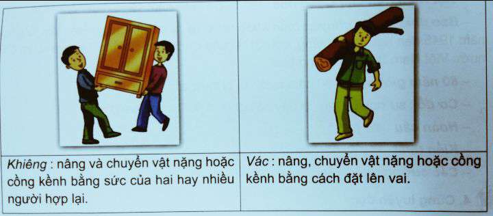 + Vác: Vật nặng được di chuyển bằng cách đặt lên vai.