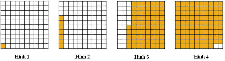 a) +) Phân số chỉ số phần đã tô màu của hình 1 là \(\dfrac{1}{100}.\)