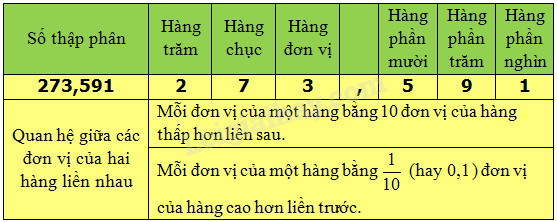 Ví dụ 1 : Trong số thập phân 273, 591 :