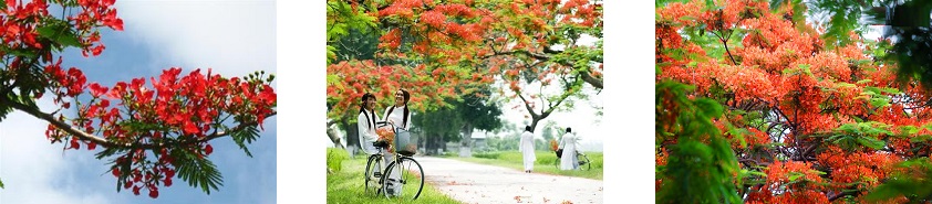 – Phượng: cây bóng mát có hoa màu đỏ, hoa mọc thành từng chùm, nở vào mùa hè.