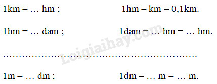 Dựa vào các kiến thức đã học ở lớp dưới để hoàn thành bảng ghi tên các đơn vị đo độ dài và nêu mối quan hệ giữa hai đơn vị đo liền kề, không liền kề.