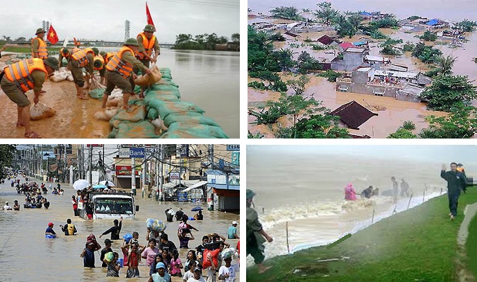 – Hình 4: Cán bộ và nhân dân vùng biển đang che chắn đê điều phòng chống bão lũ.