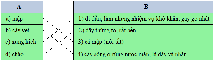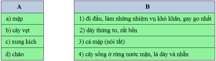 Chọn lời giải nghĩa ở cột B phù hợp với lời từ ngữ ở cột A: