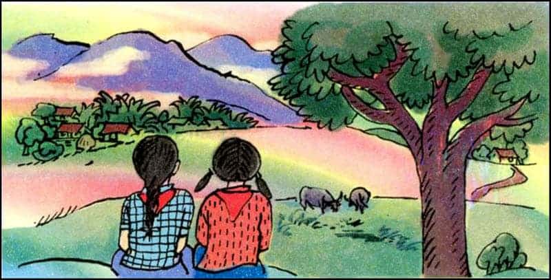 Vì các sắc màu đều gắn với những sự vật, những cảnh, những con người mà bạn nhỏ yêu quý. Nên bạn nhỏ yêu những màu đó cũng là yêu quê hương, đất nước.