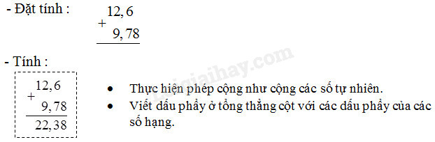 – Viết dấu phẩy ở tổng thẳng cột với các dấu phẩy của các số hạng.
