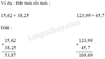 Xem lại cách cộng số thập phân vừa học ở trên rồi lấy ví dụ minh họa.
