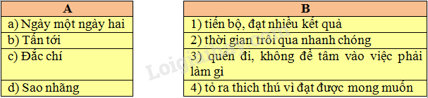 Chọn lời giải nghĩa ở cột B phù hợp với từ ngữ ở cột A
