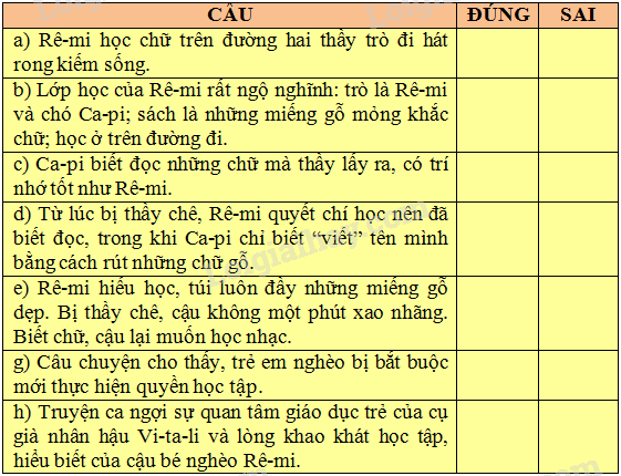 Em đọc kĩ bài rồi chọn đúng hoặc sai cho phù hợp