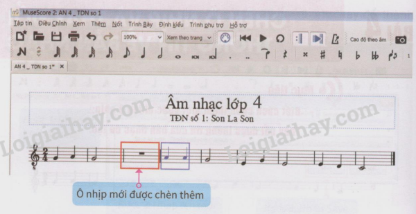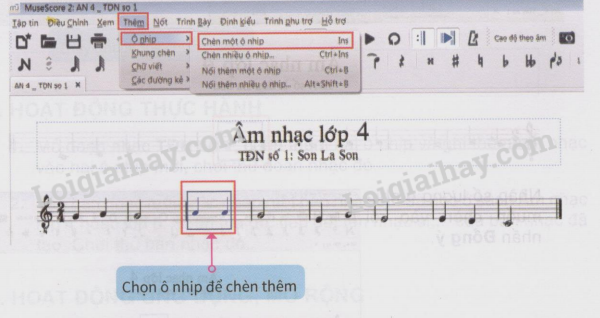 A. Hoạt động cơ bản – Bài 4 : Chèn ô nhịp và thay đổi thông tin về bản nhạc