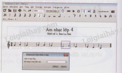Giải phần A. Hoạt động cơ bản bài 4 trang 125, 126, 127, 128 sách hướng dẫn học tin học lớp 5. Chèn thêm một ô nhịp Em hãy mở đoạn nhạc TDN số 1 . . .