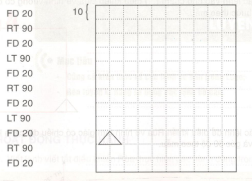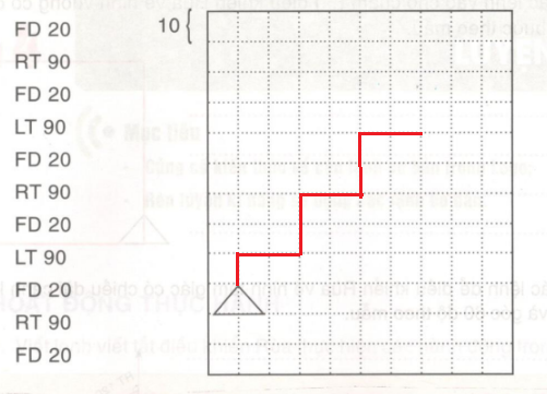 Vẽ đường đi của hình sau theo các lệnh cho trước. Biết rằng mỗi ô vuông  trong hình có chiều dài cạnh là 10 bước